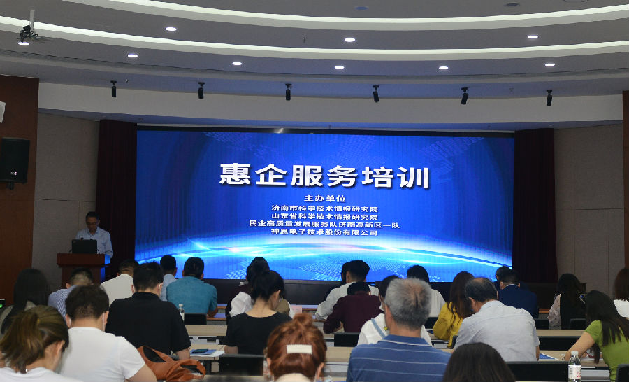 本次培训会由民营企业高质量发展服务队济南高新区一队组长张铁军主持,我院科技文献档案管理中心有关同志、济南市科学技术情报研究院院长肖燕、神思电子技术研究院常务副院长许野平及济南市50余家企业代表参加了培训。